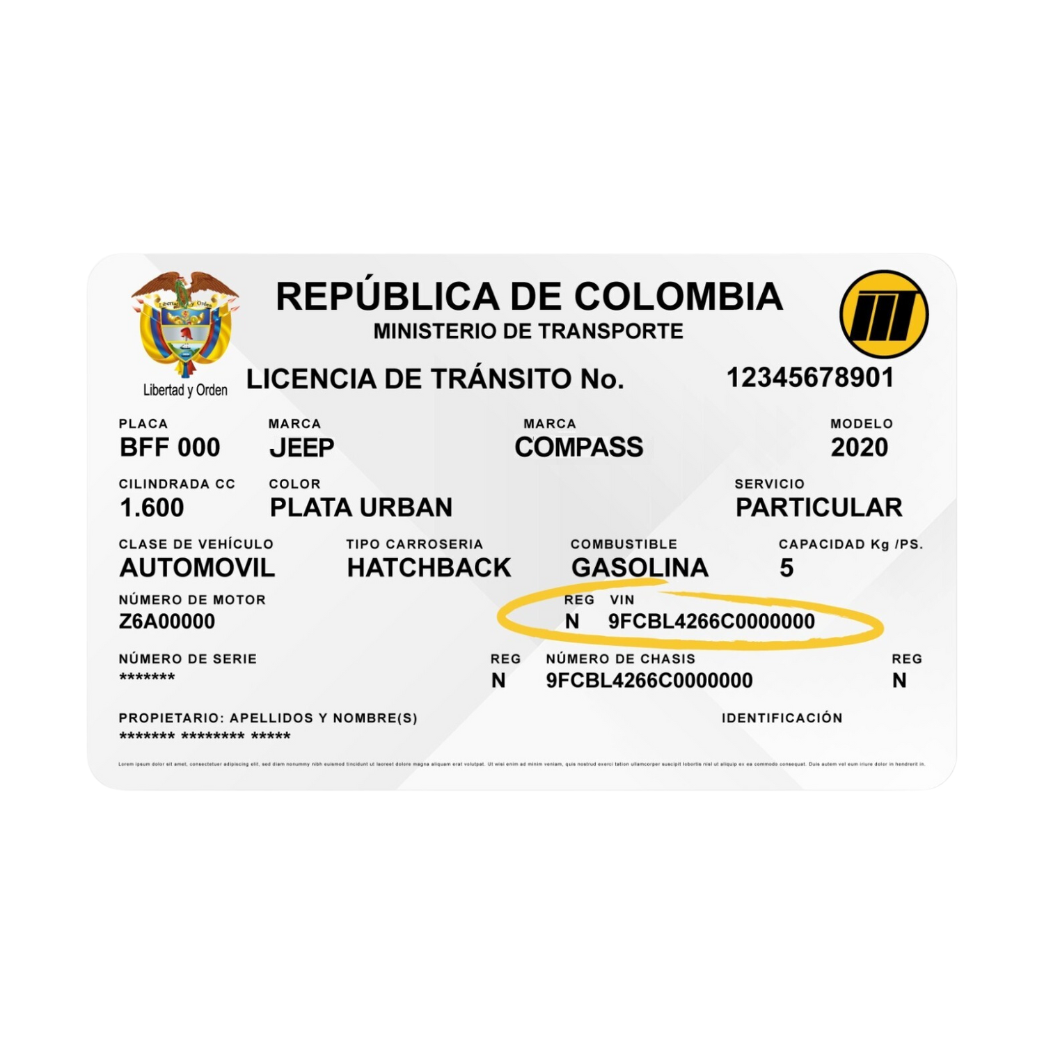 Número de Chasis ó Vin